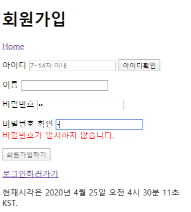 - 비밀번호와 비밀번호 확인이 같은지 체크